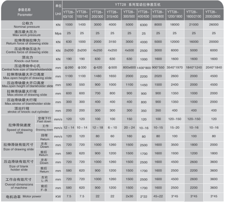 本系列液壓機具有空程速度快、效率高、能耗小、壓邊和拉伸力均可調等特點,是薄板成形的理想設備。
